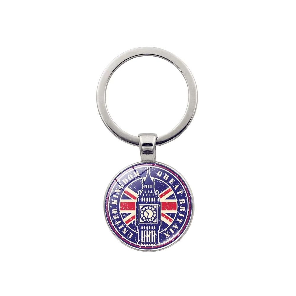 Le contraste fort entre le graphisme marqué et l’Union Jack en arrière-plan donne à ce porte-clés une identité visuelle forte.