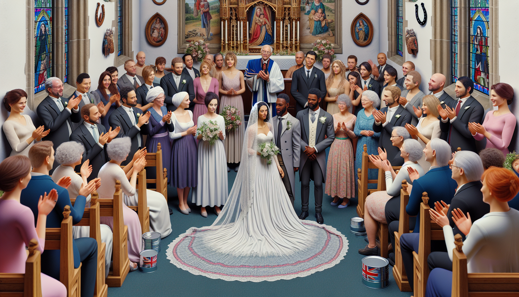 Historiquement, le mariage à l’église (church wedding) est prédominant en Angleterre, particulièrement dans les régions rurales ou traditionnelles. Ces cérémonies, souvent tenues dans de magnifiques églises gothiques, ajoutent un caractère sacré à l’union. Le décor, les chants religieux et les rituels liturgiques participent à une atmosphère toute particulière.